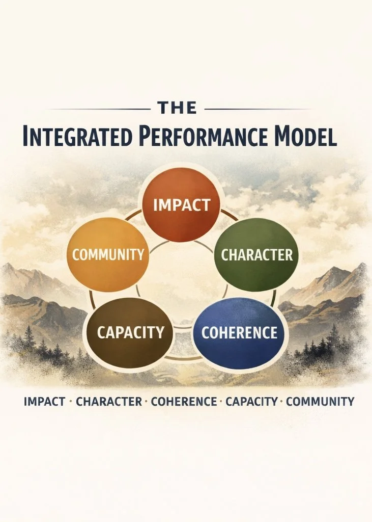 Impact, Character, Coherence, Capacity, and Community work together to create sustainable performance and meaningful progress; not just success in one area, but an integrated life marked by purpose in all areas.